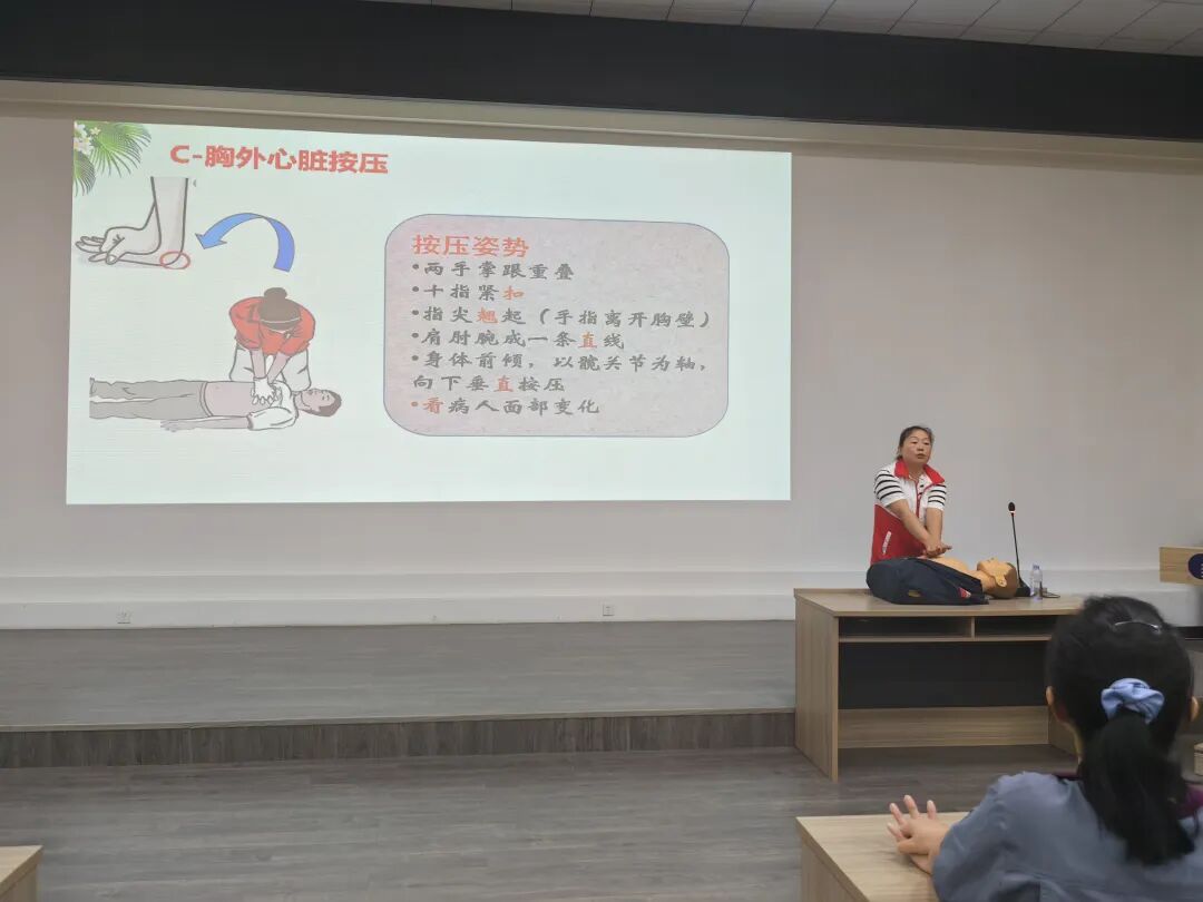 培训中,区红十字会专业讲师路伟结合企业生产实际与日常生活场景,通过理论讲解、案例分析、现场演示和实操演练相结合的方式,系统讲解了心肺复苏、海姆立克急救法、创伤止血包扎、骨折固定等应急救护知识。重点针对心脏骤停、异物卡喉等常见急症的应急处理流程进行了细致拆解,强调“黄金4分钟”在急救中的关键作用。